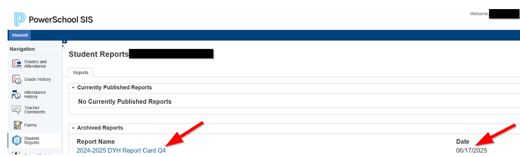 It will be the report at the top of the list. Here’s an idea of what it may look like. Instead of a report card, it will be the teacher assignment letter with a date from August 2025.